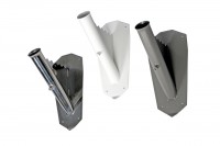 Fasádny držiak: je vyrobený z kvalitnej nehrdzavejúcej ocele. Povrch je buď komaxitovaný bielou farbou RAL 9010 alebo šedou farbou RAL 9007, prípadne je leštený. Veľkosť držiaku je 150x300 mm a váha je necelé 2 kg. Držiak má elegantný tvar a hodí sa tak na akúkoľvek fasádu domu. Na držiaku je urobené špeciálne zahnutie, ktoré odvádza vodu od fasády a zabraňuje, aby sa časom na vašej fasáde (vplyvom dažďa) vytvorili nevzhľadné usadeniny.